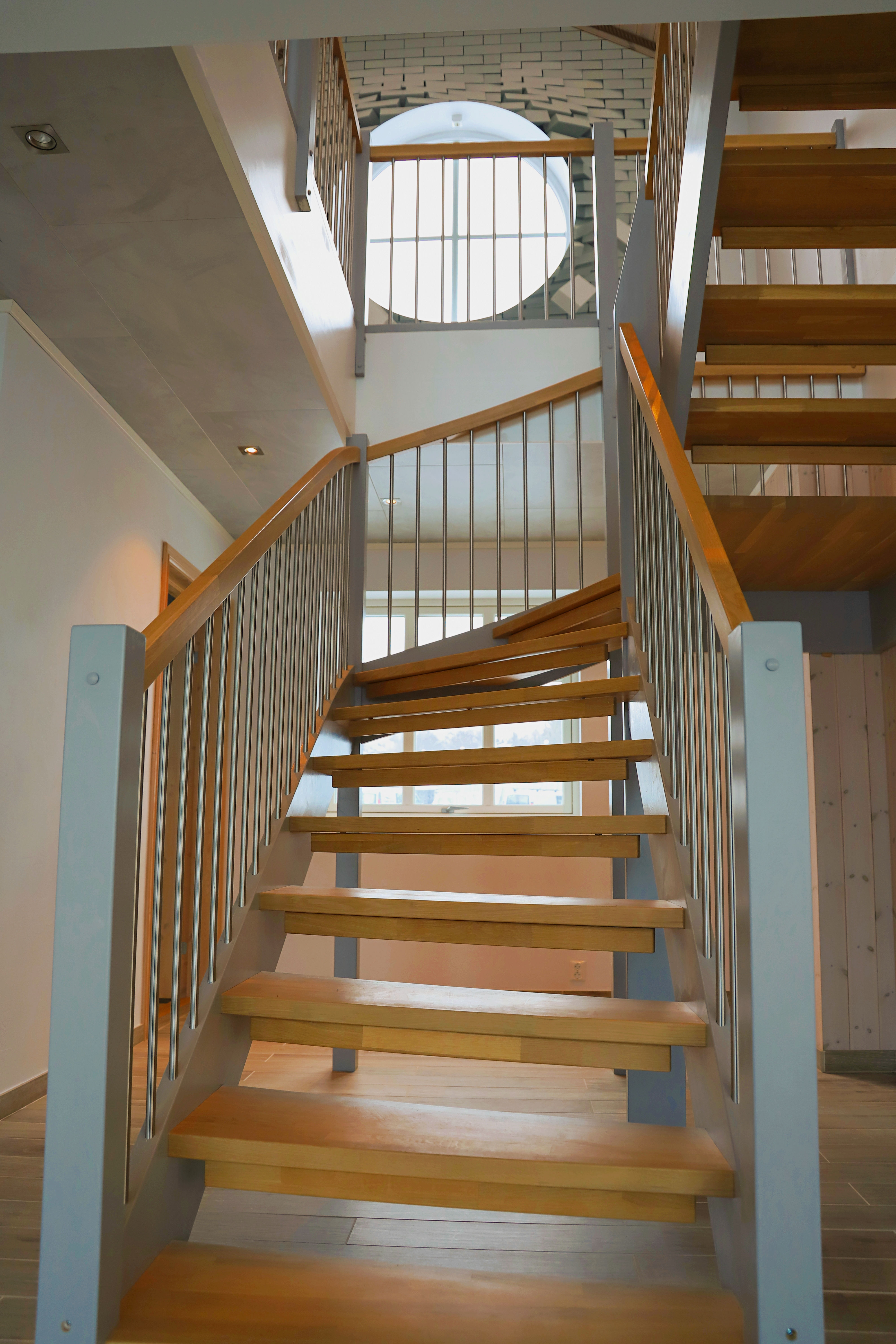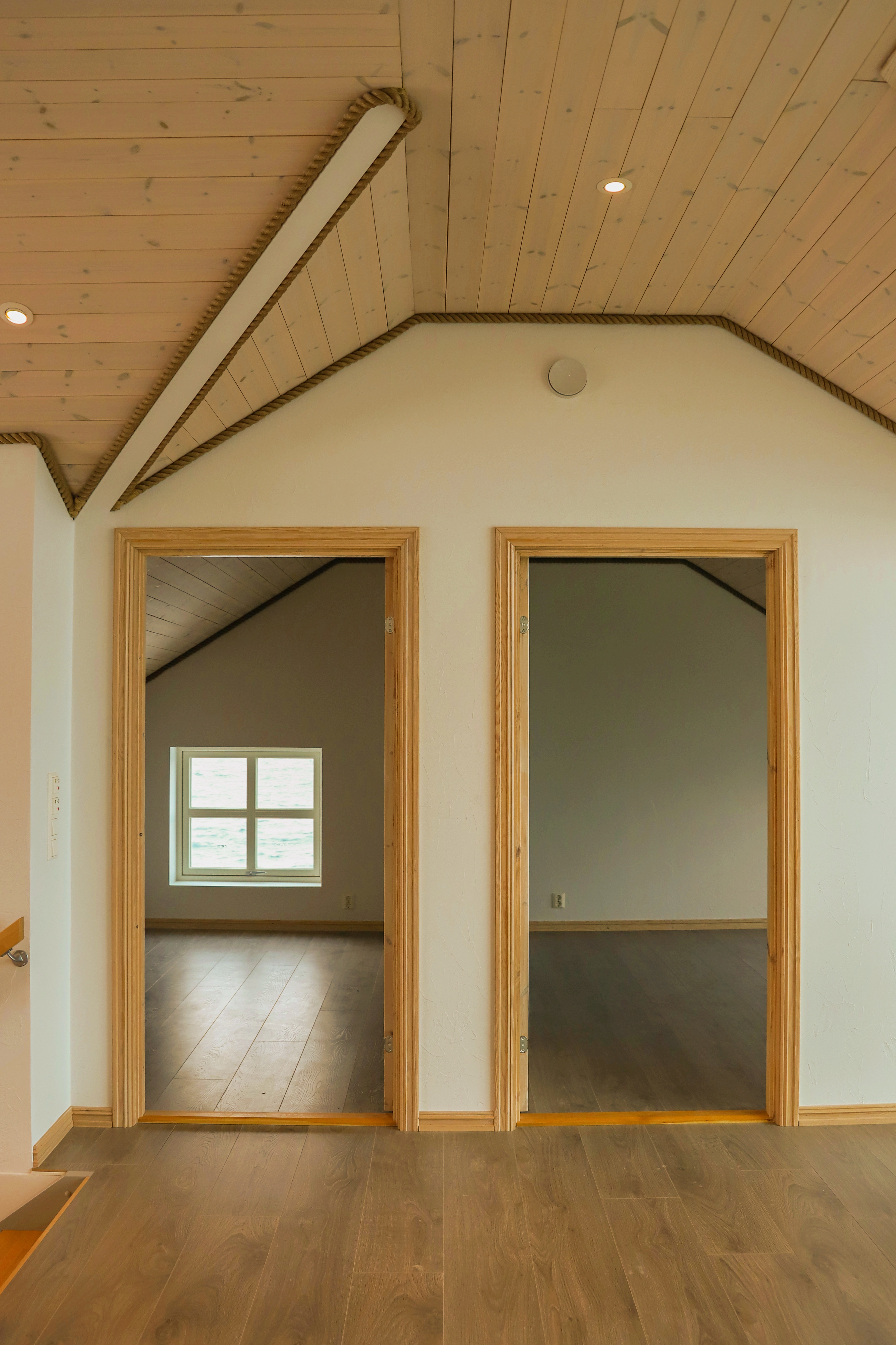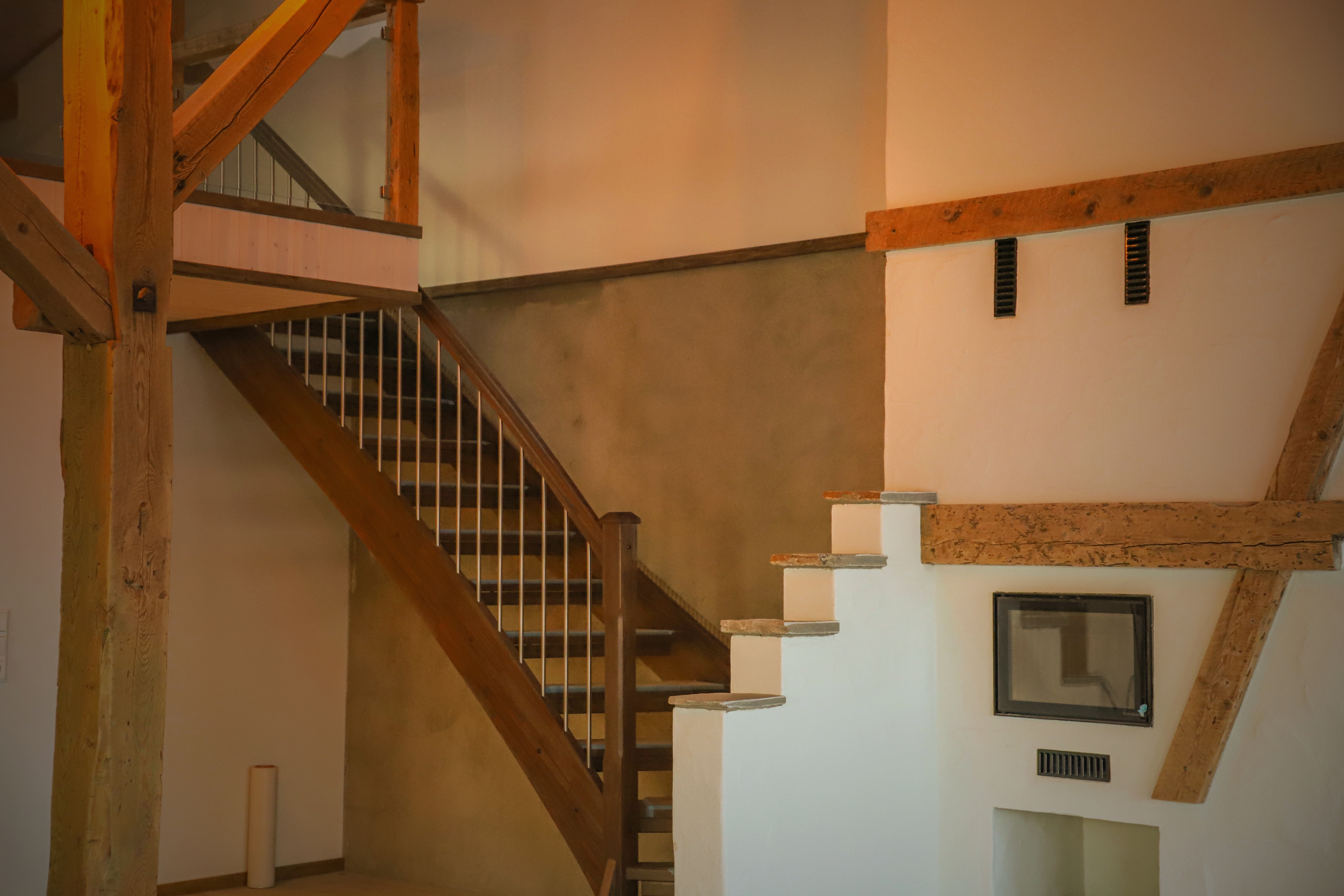 Leilighetene som bygges går over to plan. De gamle bærebjelkene er bevart, det gir leilighetene et stilig og unikt utseende.