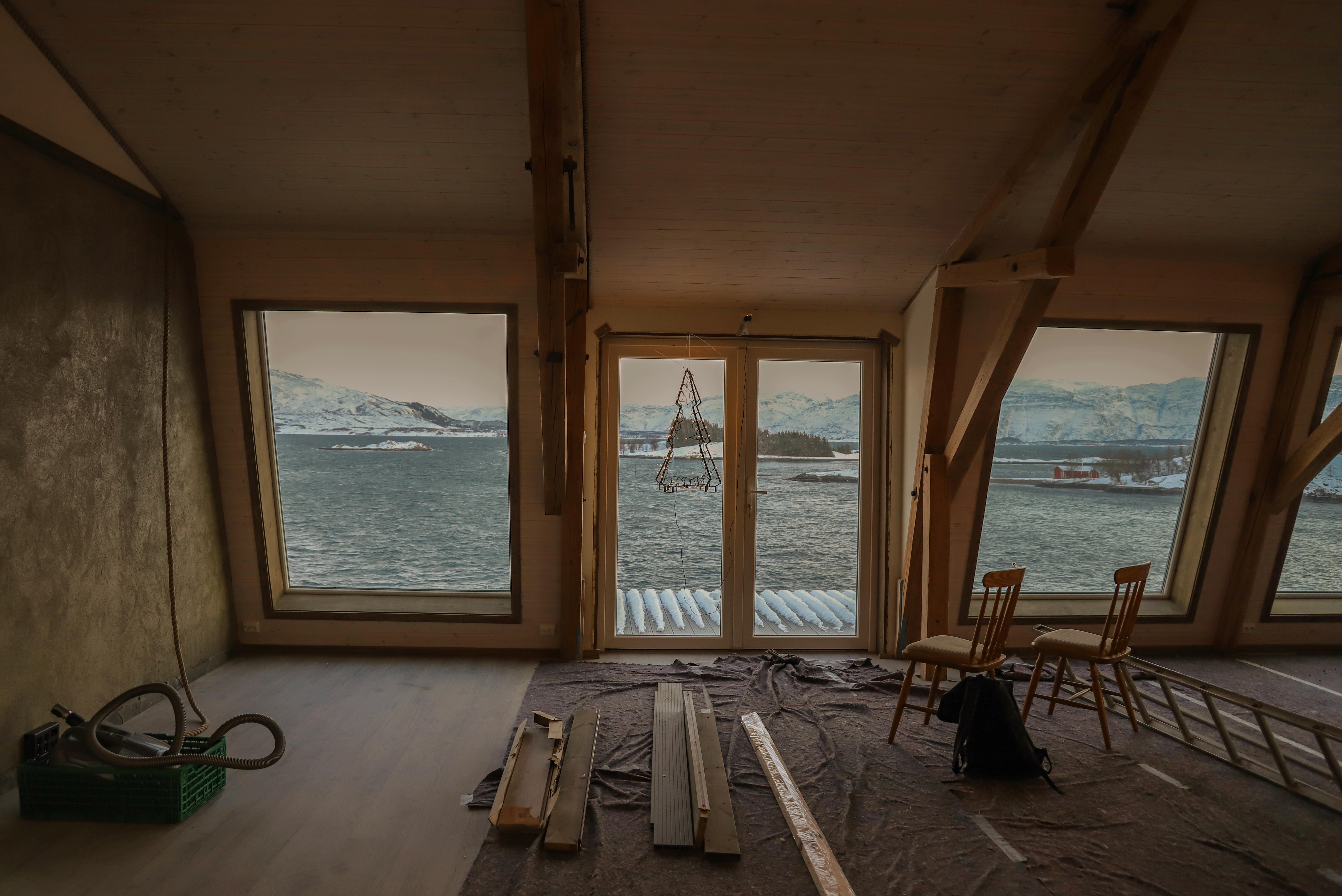 Huset på kaikanten fylles av et fantastisk lys fra de store vinduene. Her får du flott utsikt i alle retninger.